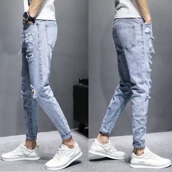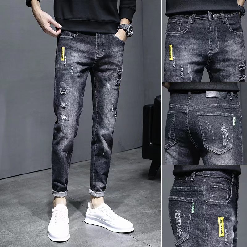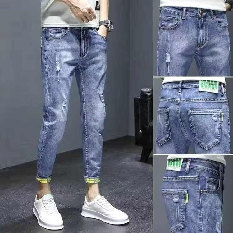 【宅男屋】多款可選 潮流刷破牛仔褲男 重磅潮牌修身 牛仔小腳褲 韓版九分褲 破洞休閒破洞牛仔褲 男生長褲 TOK55